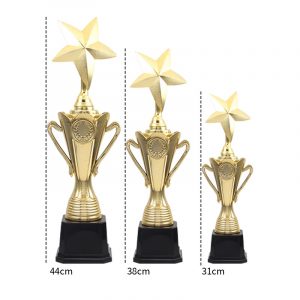 Made from premium quality metal, our trophy showcases a sleek and modern design, exuding a sense of sophistication and prestige. The gold tone adds a touch of luxury, making it a symbol of achievement and success.