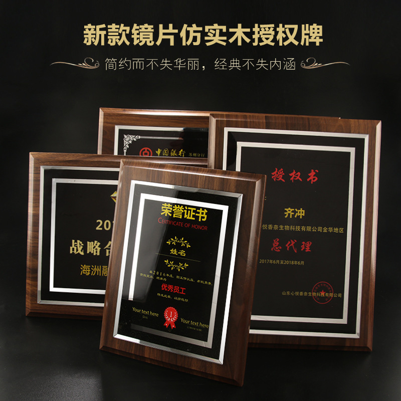 Wooden medal, crystal trophy, authorized plaque production, joining honorary plaque, high-end dealer agency certificate